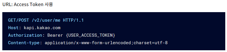 카카오 문서에서 사용자 정보 요청 Rest API는 두 가지 방식으로 사용할 수 있도록 한다.