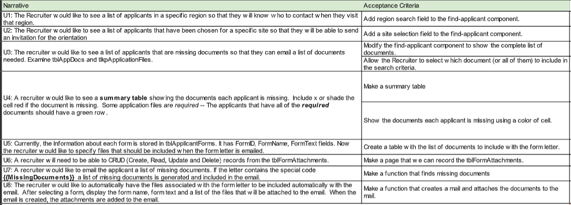 나는 Search-Committe이라는 팀에 배정을 받았다. 우리 팀이 Client에거 의뢰받아 개발해야 할 기능은 8가지였는데, 아래 사진과 같습니다.