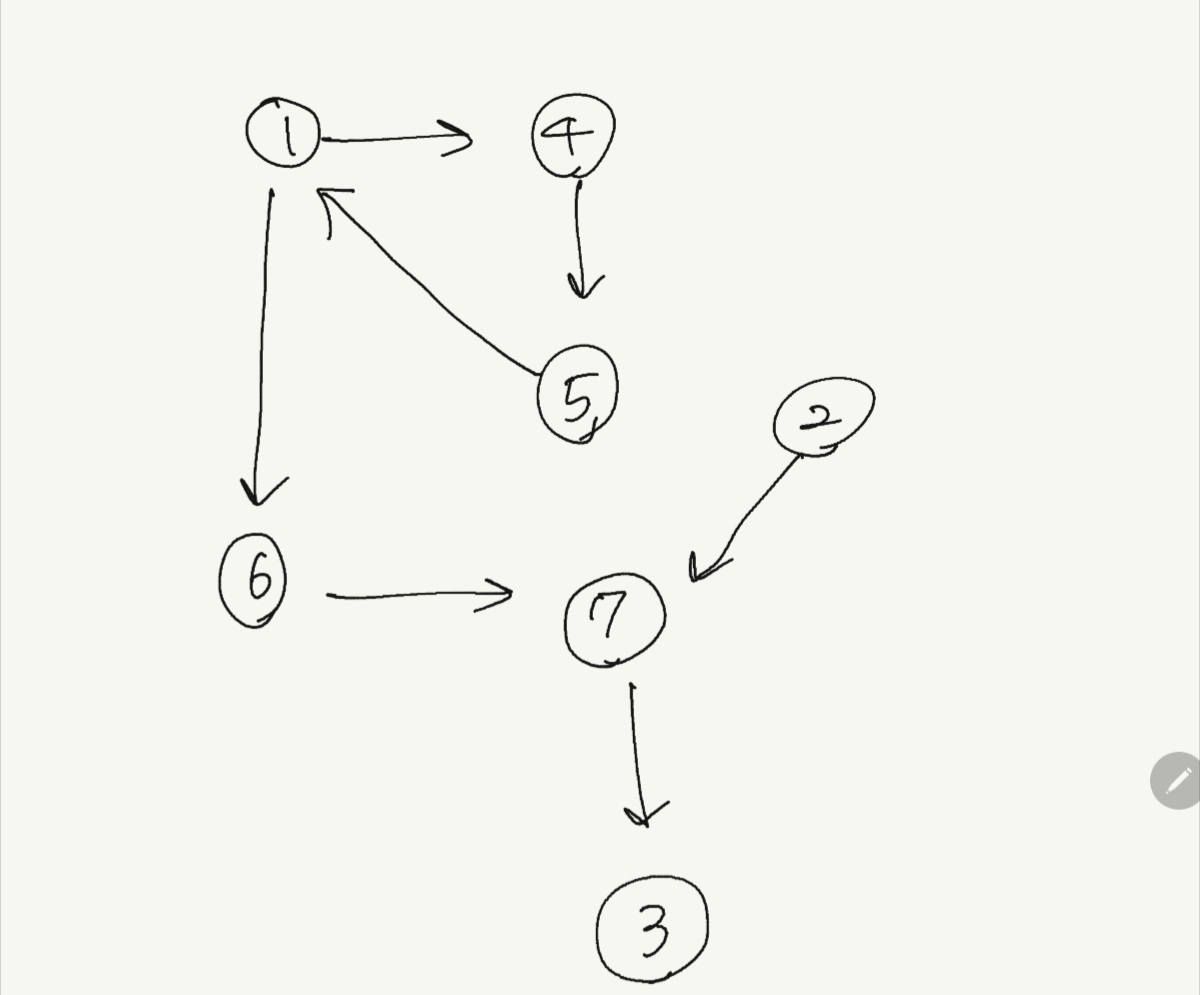 1 = 1에서 6과 4로 dfs 할 때 1보다 더 높은 선조로 갈 수 있는 역행 간선 존재X -> o